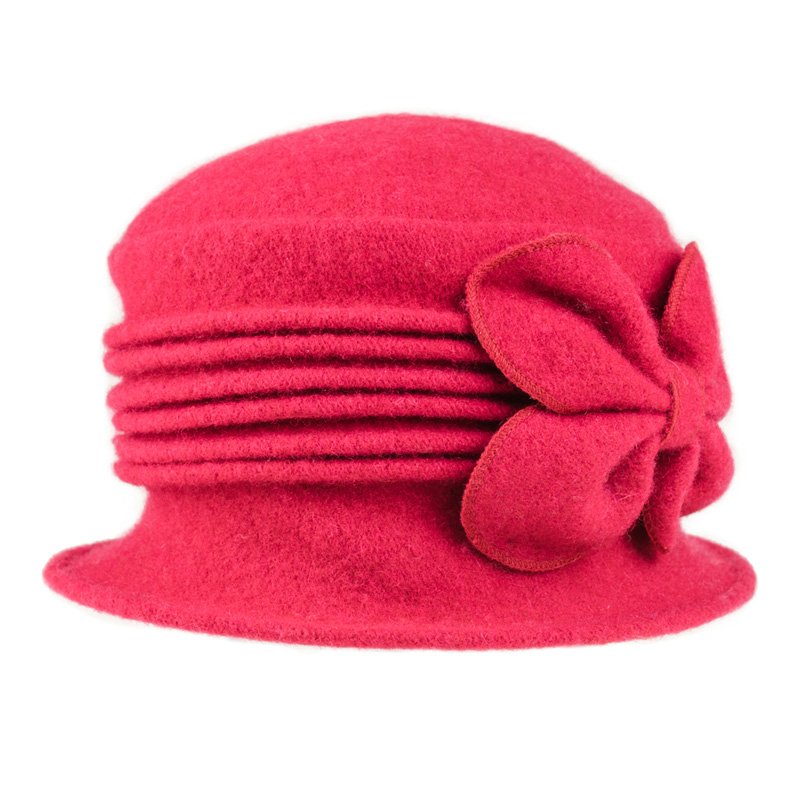 Wholesale ladies crushable red wool hat with flower detail