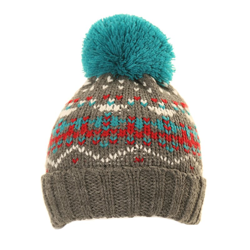 Boys pattern bobble hat with patterned design in grey from wholesale hat supplier SSP Hats